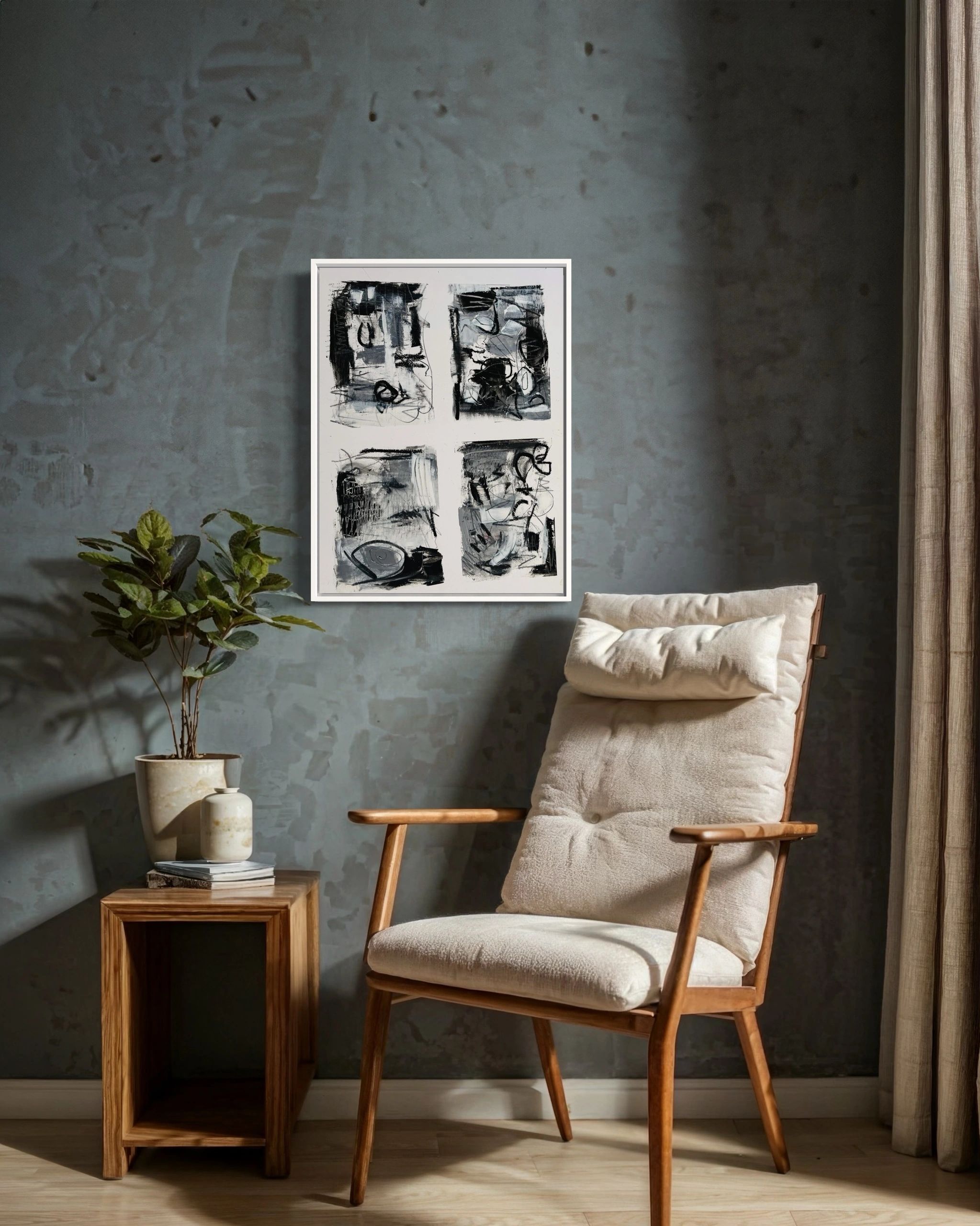 Black and White Study 1. Mixed Media 21″ x 27″ Work by Artist Mary Ellis. An abstract expressionist painter most known for her successful souvenir brand creating her iconic Pop art designs. This is one of her more recent pieces. She has unlocked a new depth in her work and is embracing her inner voice and exploring the limitless possibilities of her lifelong passion in art.