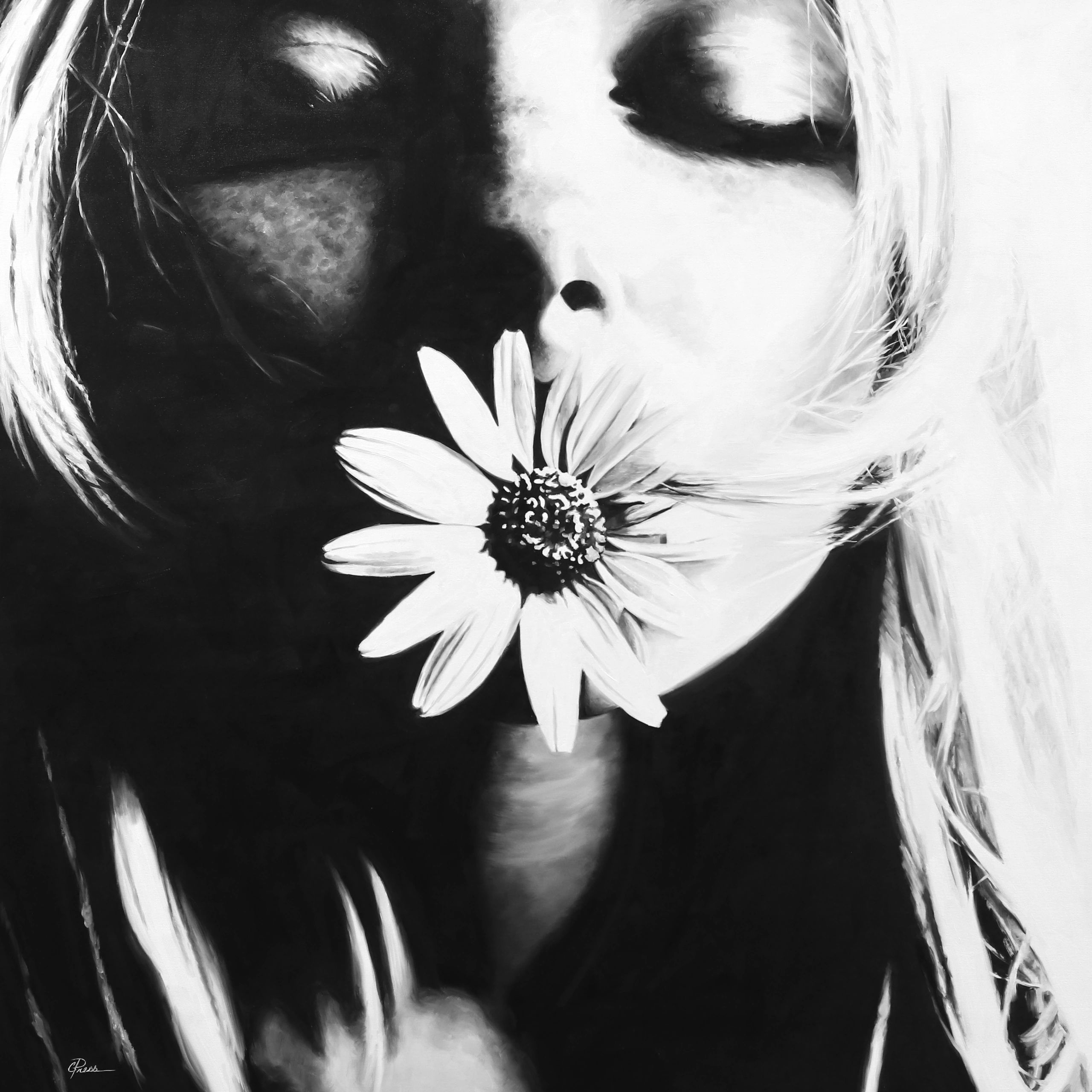 Oil on Canvas 48″ x 48″ x 1″ The work of Cindy Press celebrates women by exploring the connection between our physical bodies and personal identity. Inspired by fashion, photography and popular culture Press references personal issues, sexuality and gender as a central theme in her work. Press considers how style reflects how we engage with the world around us. “Clothes are a personal decision and what we choose to wear is the way we express ourselves. Often times it’s a gesture or pose I am interested in, it’s there that I see the history of figure or portrait painting”. Ships rolled in a tube or contact for an extra charged to be stretched. 4 week delivery time.