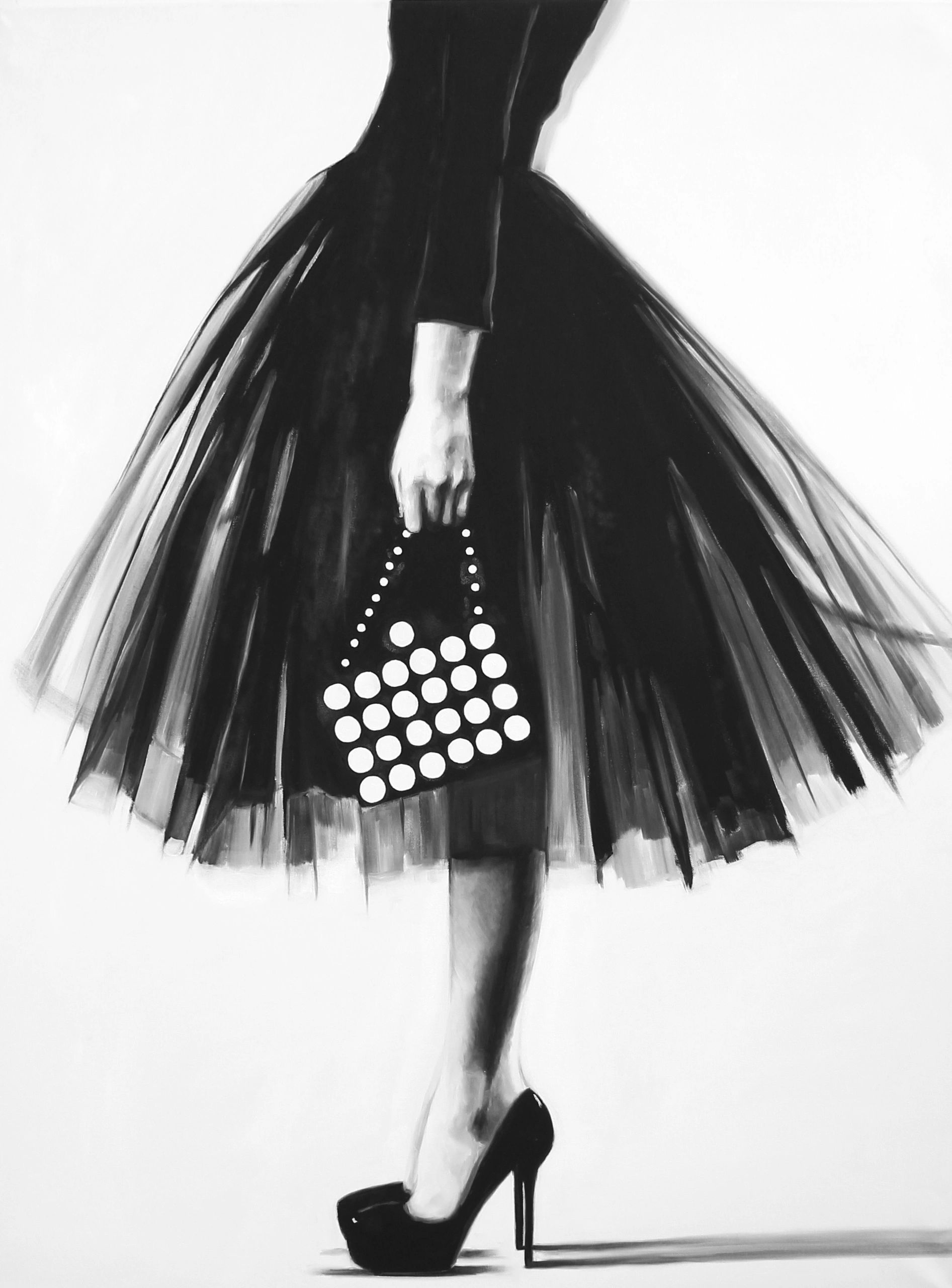 Oil on Canvas 48″ x 36″ x 1″ The work of Cindy Press celebrates women by exploring the connection between our physical bodies and personal identity. Inspired by fashion, photography and popular culture Press references personal issues, sexuality and gender as a central theme in her work. Press considers how style reflects how we engage with the world around us. “Clothes are a personal decision and what we choose to wear is the way we express ourselves. Often times it’s a gesture or pose I am interested in, it’s there that I see the history of figure or portrait painting”. Ships rolled in a tube or contact for an extra charged to be stretched. 4 week delivery time.