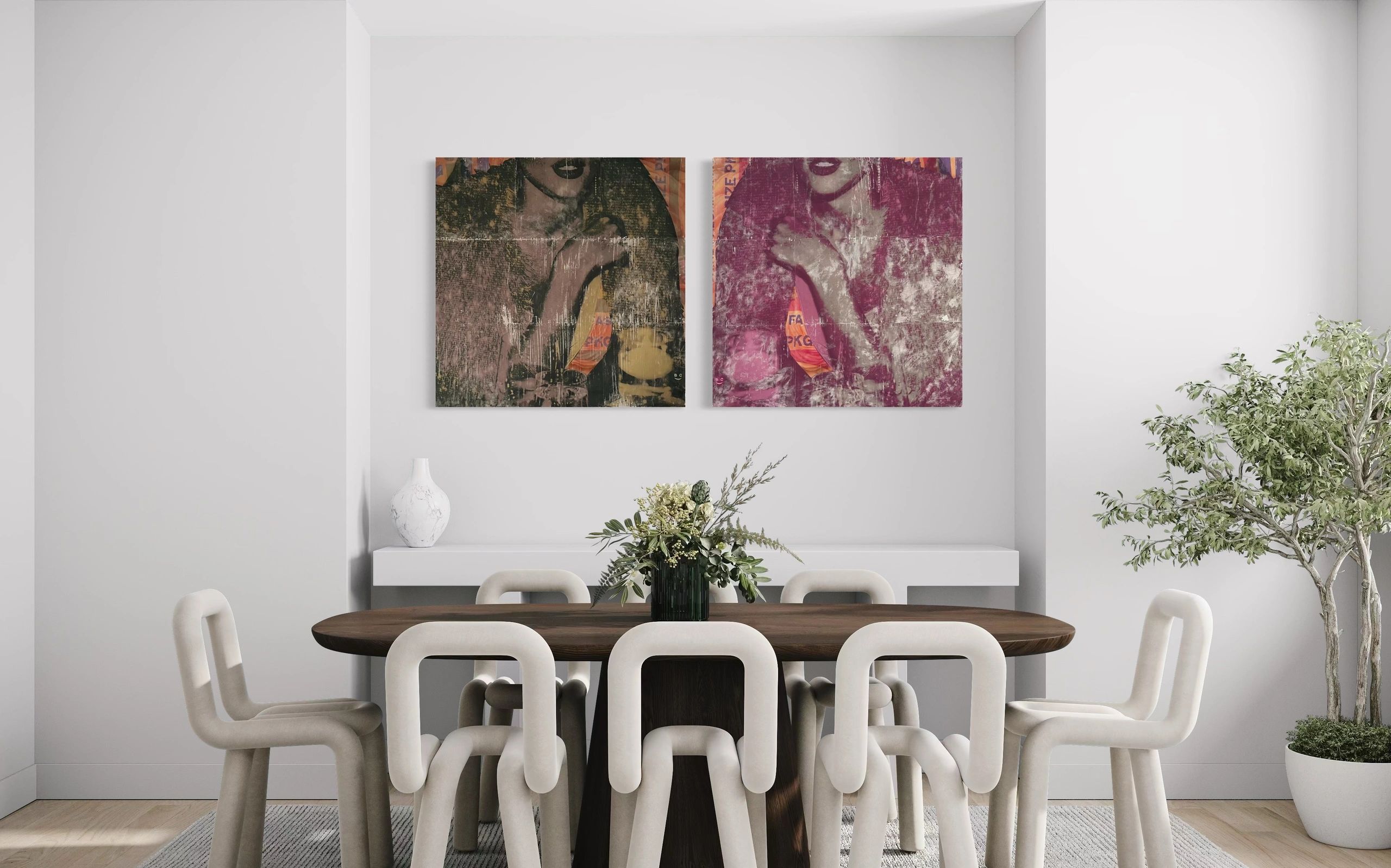 Original mixed media by Bryn Craven. Glamazon Green 36 x 36 ink and gel on canvas by Bryn Craven.