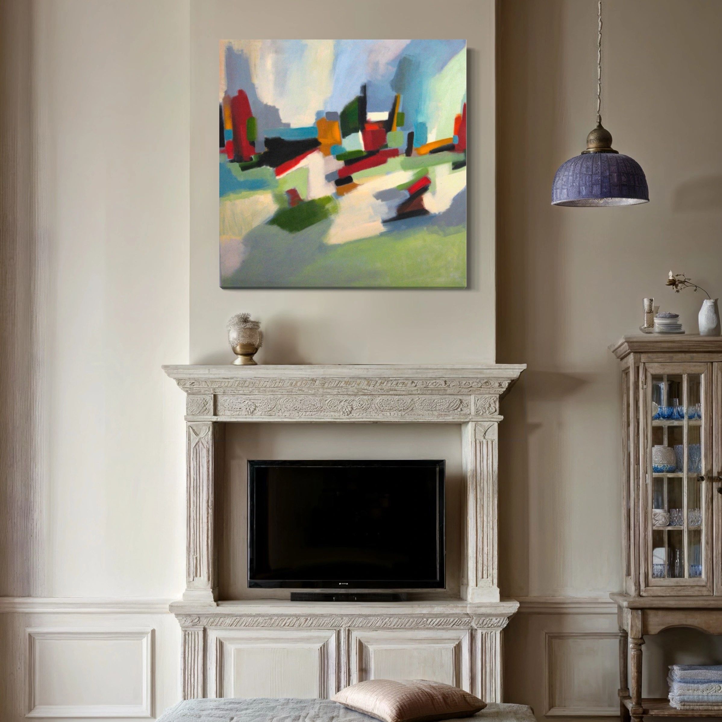 Acrylic on canvas 48″ x 48″ Work by Artist Mary Ellis. An abstract expressionist painter most known for her successful souvenir brand creating her iconic Pop art designs. She has unlocked a new depth in her work and is embracing her inner voice and exploring the limitless possibilities of her lifelong passion in art.