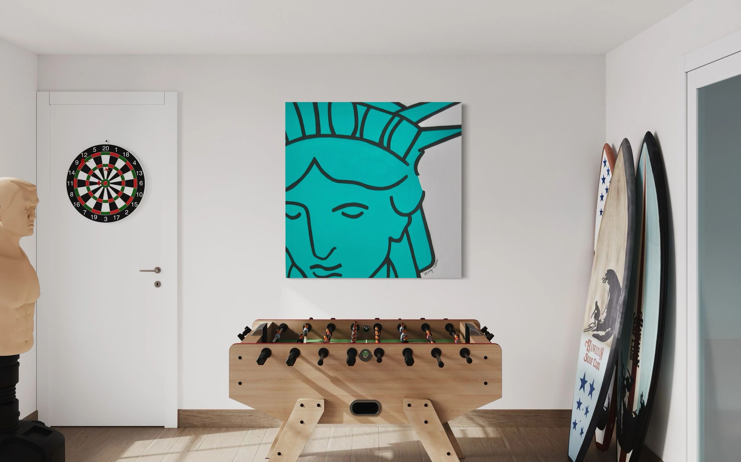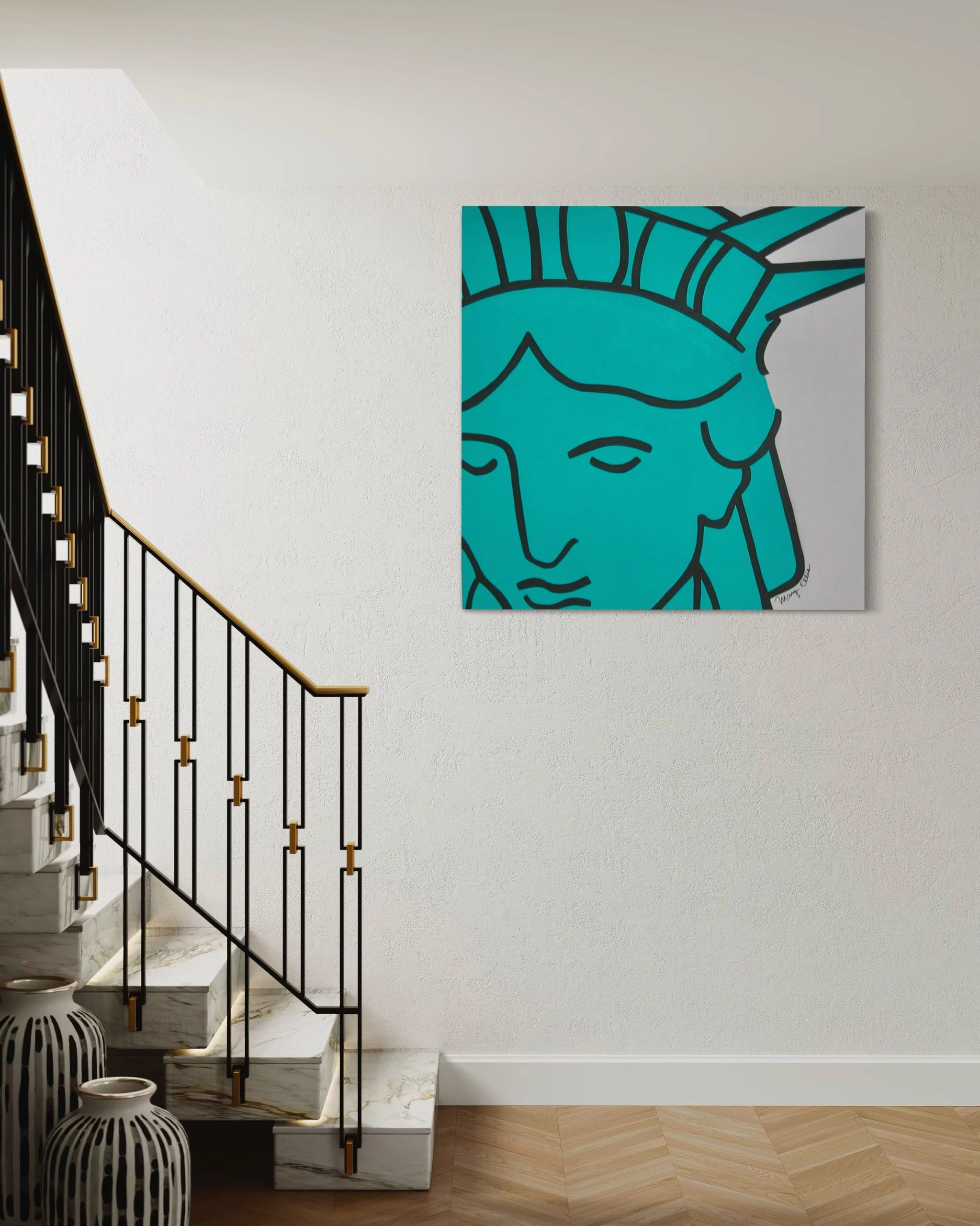 Acrylic on canvas. 48″ x 48″ Work by Artist Mary Ellis. An abstract expressionist painter most known for her successful souvenir brand creating her iconic Pop art designs. She has unlocked a new depth in her work and is embracing her inner voice and exploring the limitless possibilities of her lifelong passion in art. These Pop pieces are such a special part of her journey- and now yours!