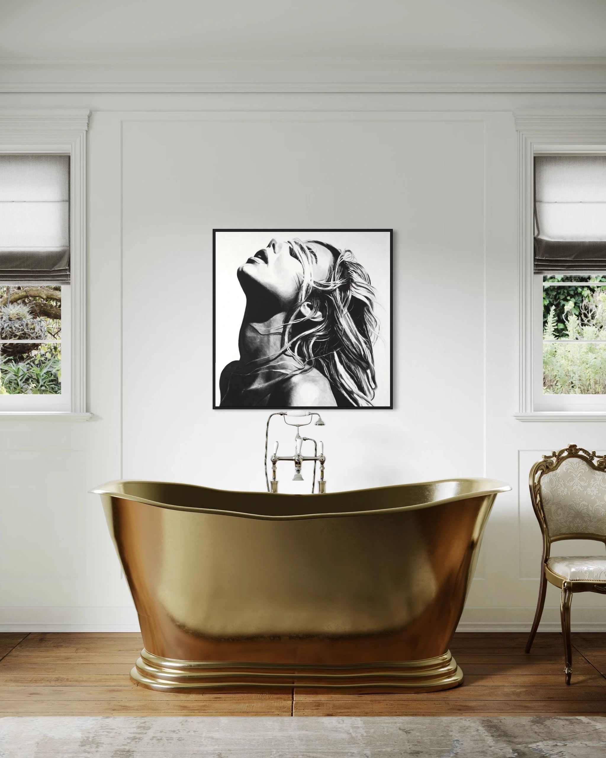 Oil on Canvas. 36″ X 36″ X 1″ The work of Cindy Press celebrates women by exploring the connection between our physical bodies and personal identity. Inspired by fashion, photography and popular culture Press references personal issues, sexuality and gender as a central theme in her work. Press considers how style reflects how we engage with the world around us. “Clothes are a personal decision and what we choose to wear is the way we express ourselves. Often times it’s a gesture or pose I am interested in, it’s there that I see the history of figure or portrait painting”. 4 week delivery time.
