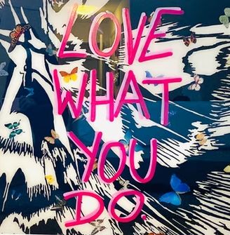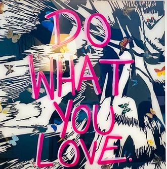 Original mixed media by Arlette Kassin. Two Piece Set 24 x 24 Spray paint on acrylic in white frame, Each at $3,250.