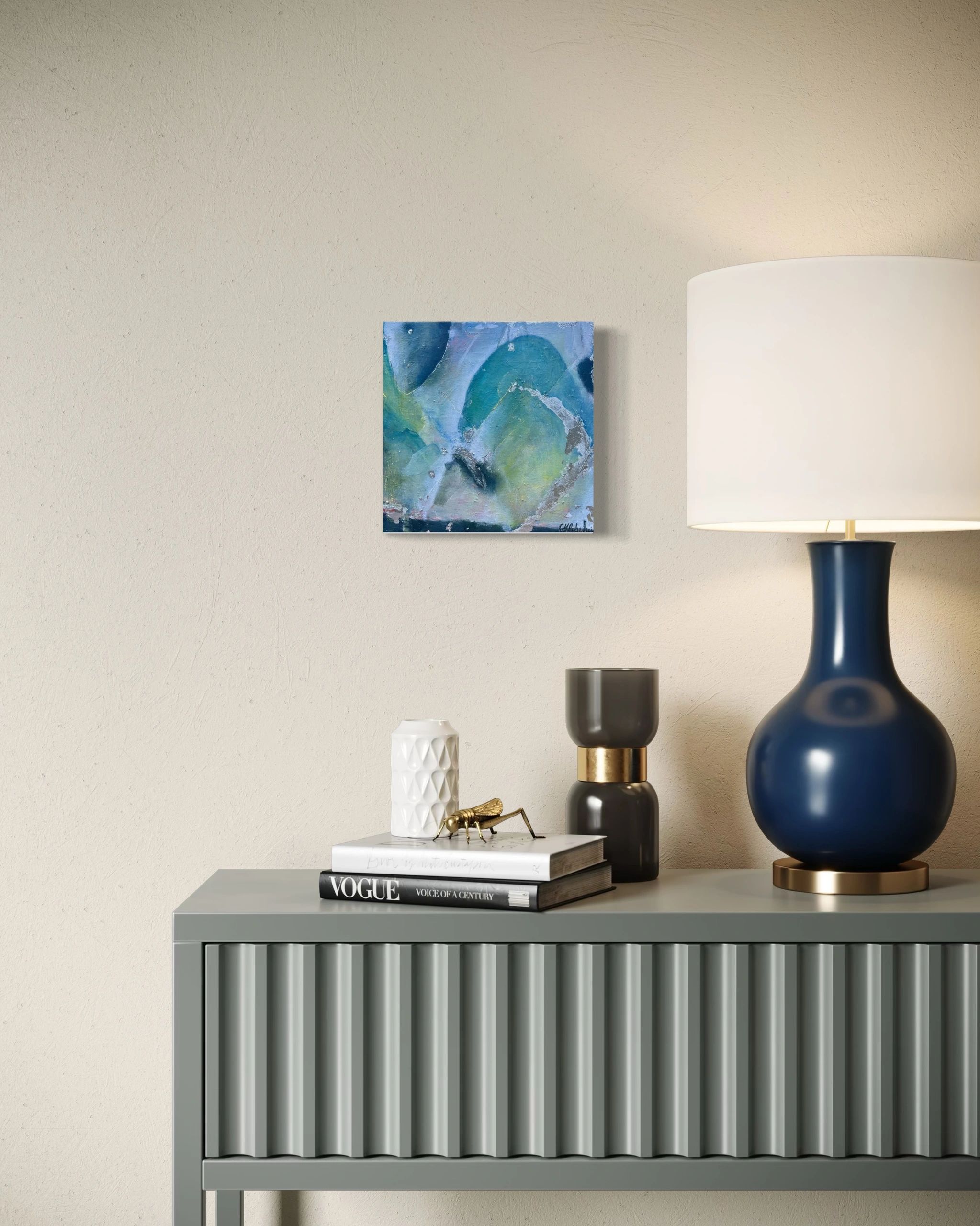 Original oil by Cecile Roberfroid. Oil on canvas with silver leaf.