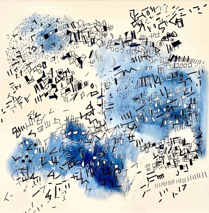 Taking Notes by Mary Ellis 12 x 12 oil and ink on canvas. Mary Ellis is an abstract expressionist. See her full collection here Mary Ellis