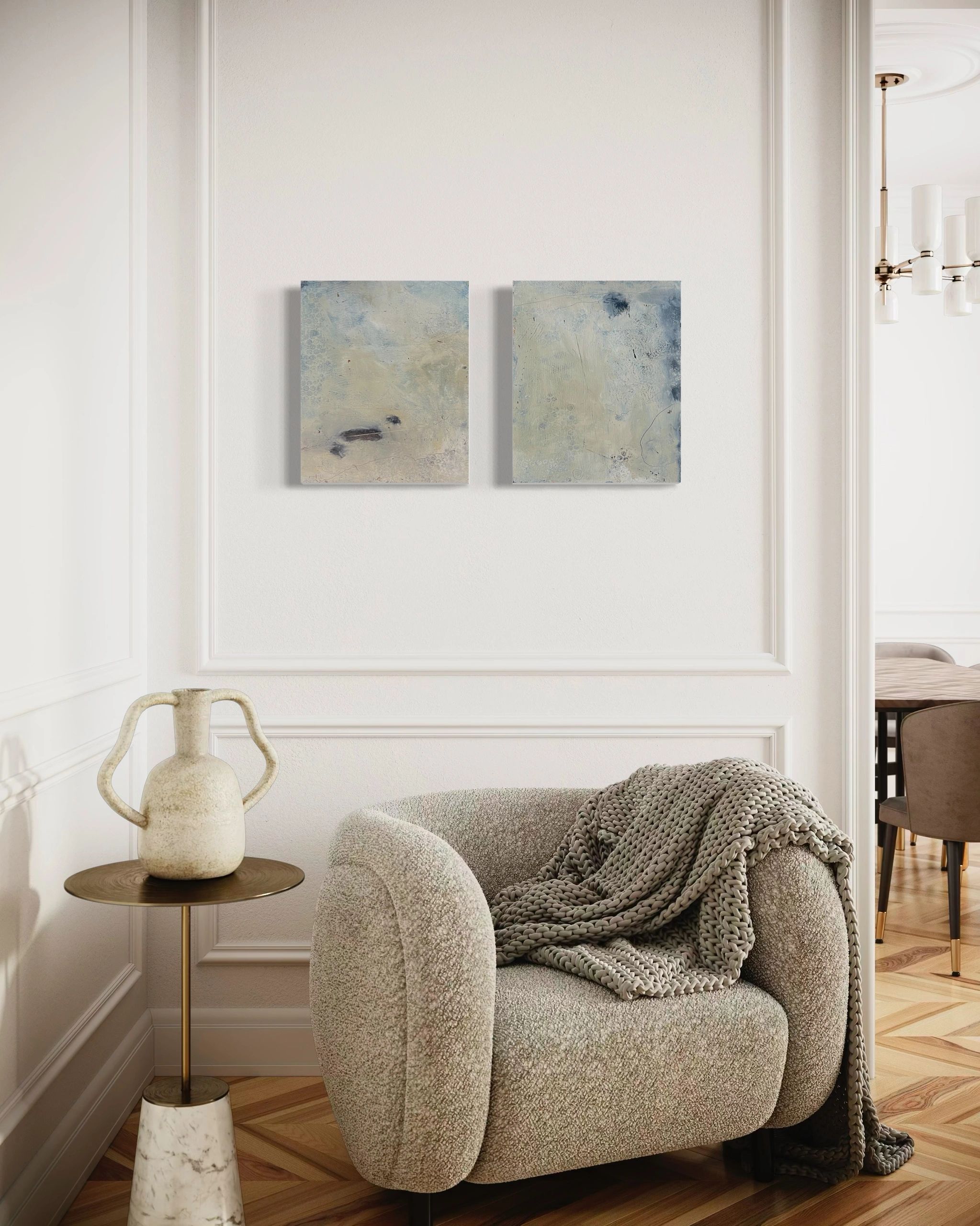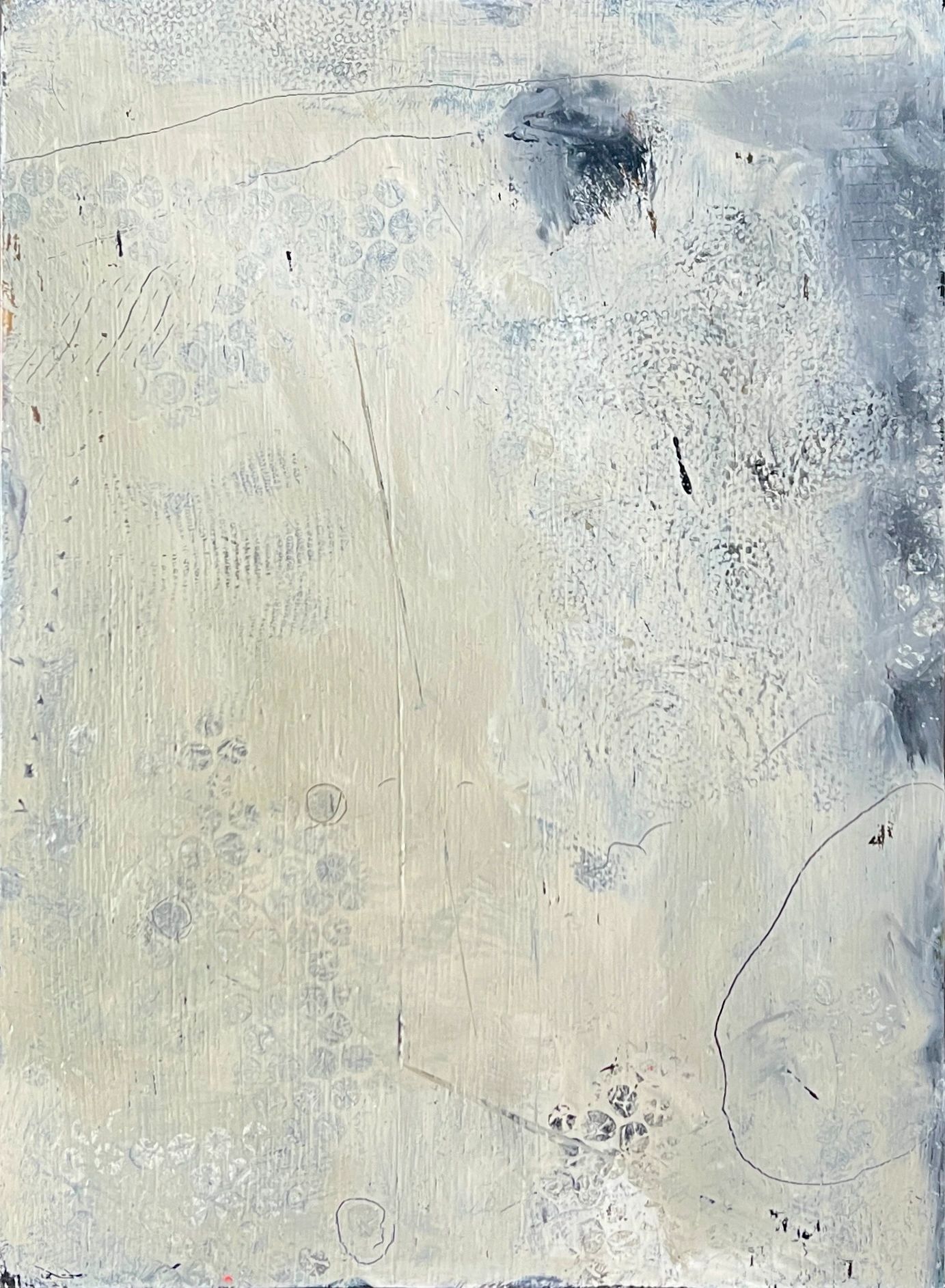 Untitled #3094. Oil on wood. 15 x 11 Cécile Roberfroid is exploring texture and mark-making, these abstract paintings use muted light colors to highlight intricate surfaces crafted with unconventional tools like paper towels, drawer liners, and plastic wrap each piece revealing unexpected textural nuances.
