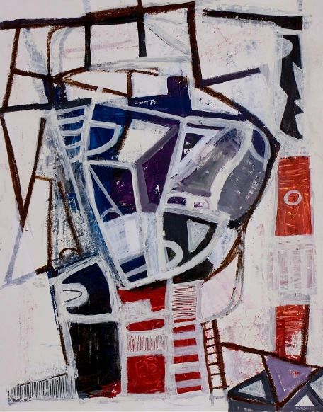 Original mixed media by Anton. 22 x 28 and then framed in white wood.